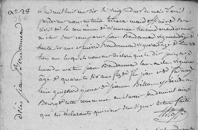Jean BONDONNEAU est né le 25 septembre 1757 à 17h à Venesmes (Cher).